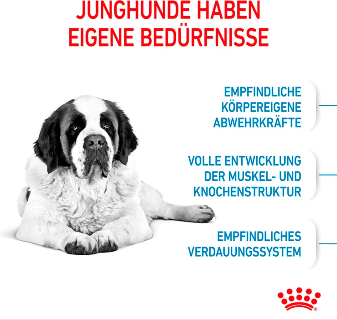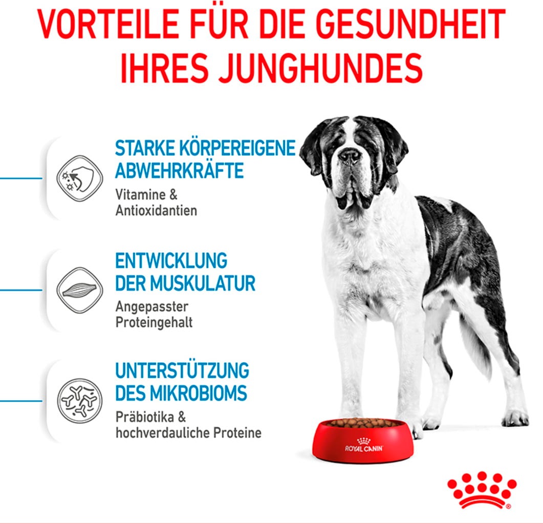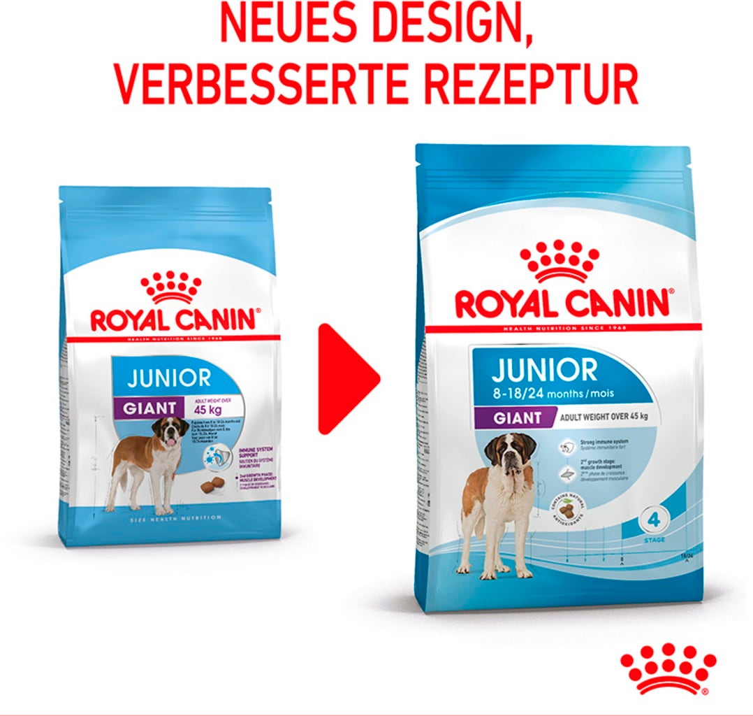 Giant dogs take around 18-24 months to reach their adult weight of 45+ kg. During this time, their nutritional needs evolve, so two diets have been developed: ROYAL CANIN® Giant Puppy, to be given between 2 and 8 months, and this formula - ROYAL CANIN® Giant Junior - for the period of 8 to 18/24 months.
