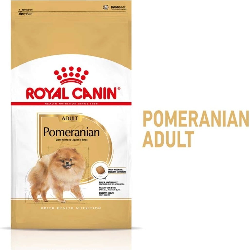 ROYAL CANIN® Pomeranian Adult is a tailor-made, breed-exclusive formula, specially for adult Pomeranian dogs like yours. Supporting your small dog's bones and joints is important for their overall health and wellbeing. ROYAL CANIN® Pomeranian Adult contains advanced nutrients and an adapted mineral content to help support healthy joints and ligaments, while also helping to maintain optimal hydration of the joint cartilage.