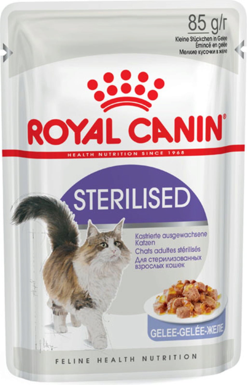 That's why ROYAL CANIN® Sterilised in Jelly is specially formulated with the nutritional needs of your neutered adult cat and its lower levels of activity in mind. With a controlled energy content and a moderate level of fat, ROYAL CANIN® Sterilised in Jelly helps to support and maintain a healthy weight; particularly when served in accurate daily rations.