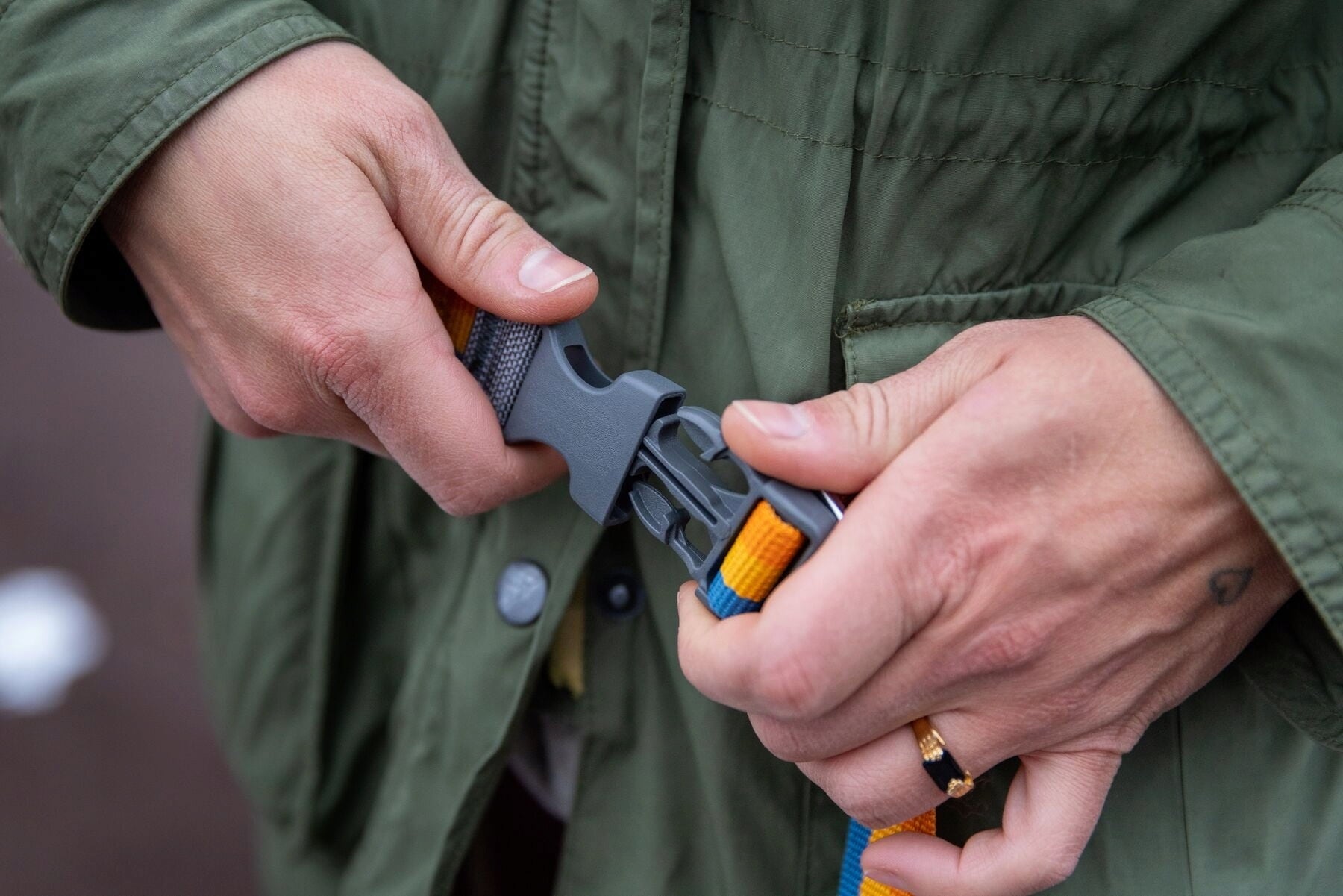 - Hands-free wear with a side-click fastener and aluminium uni loop