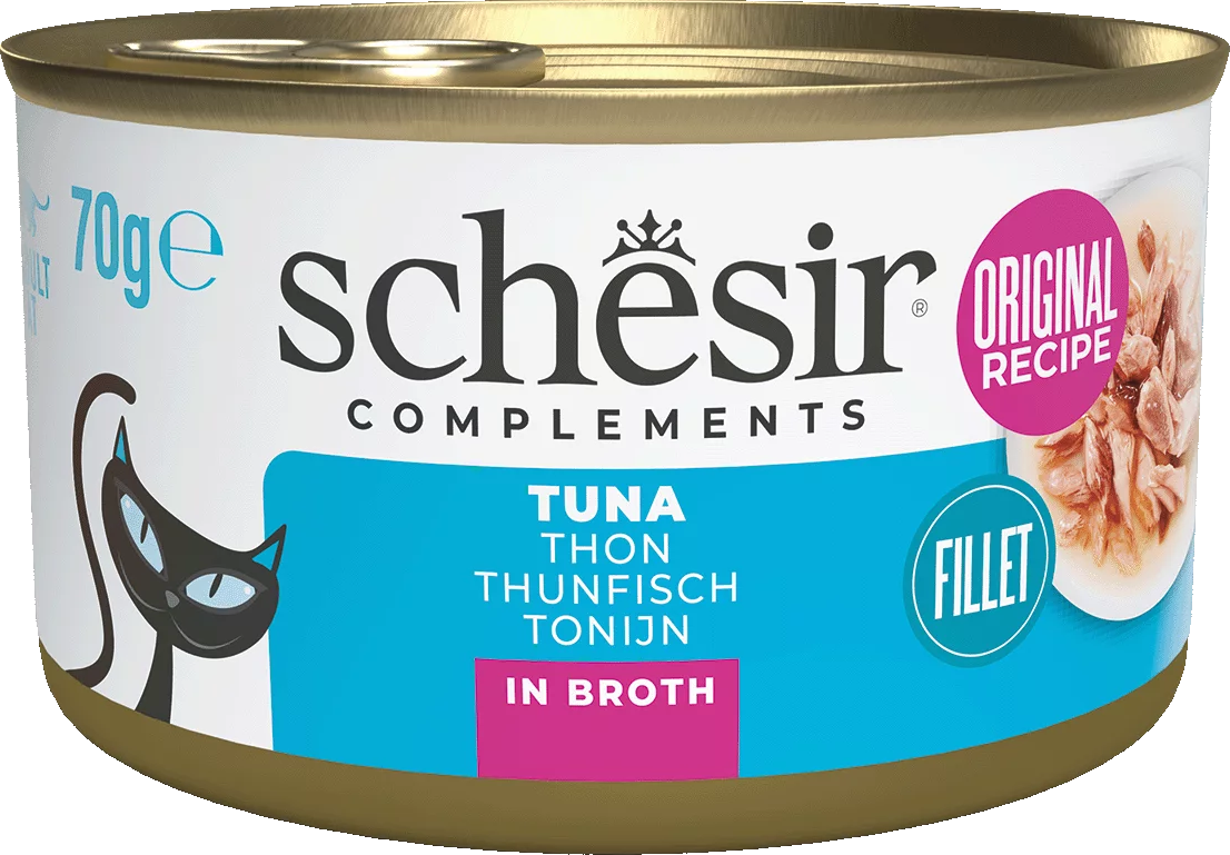Wet cat food in Broth by Schesir features a variety of delicious recipes in delicate cooking broth. Each recipe is made with 100% natural ingredients and includes high-quality cuts of: