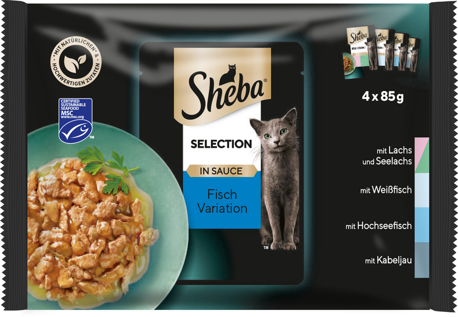 Sheba Selection in Sauce - Fish Variation, 4 x 85 g, 340 g