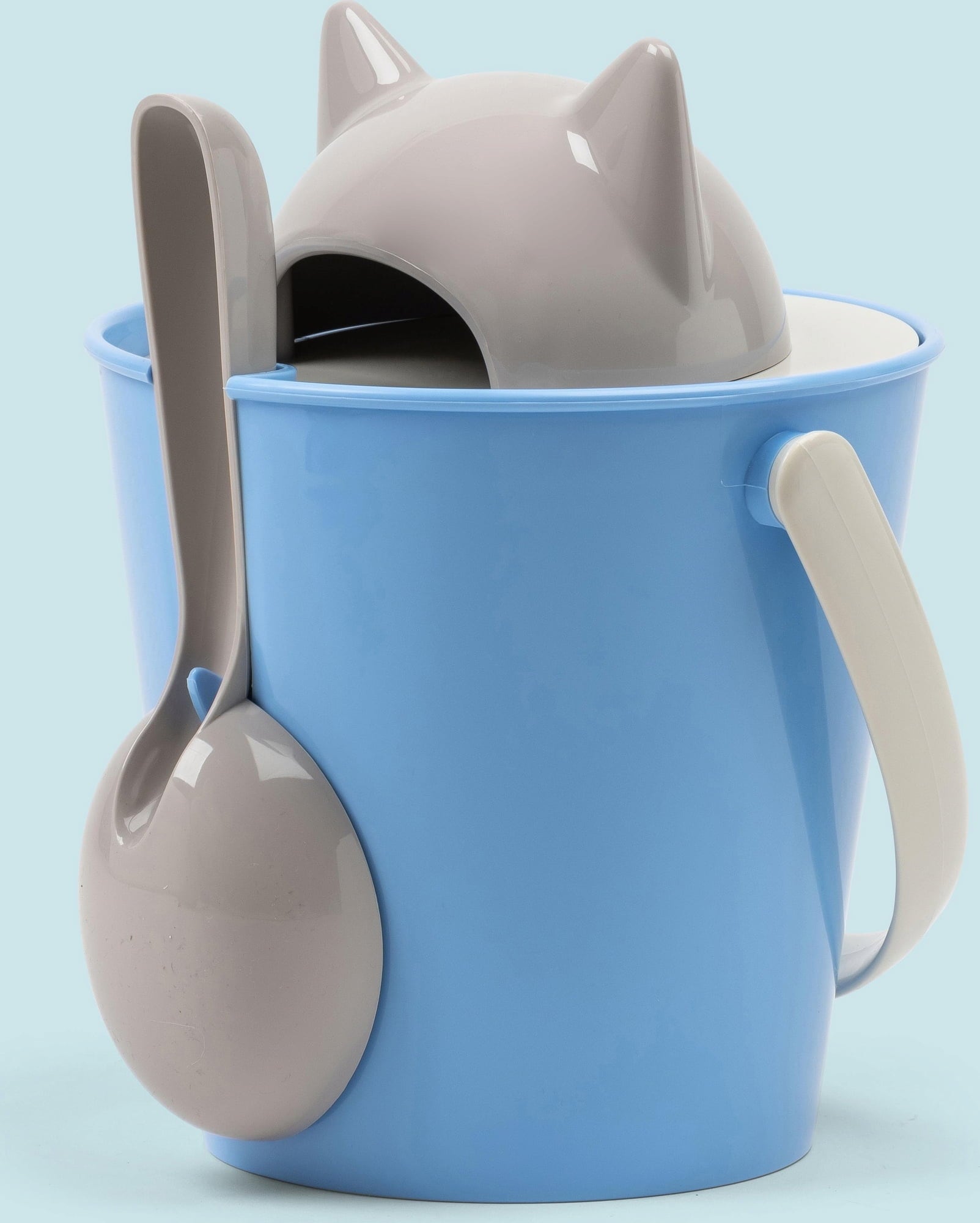 This adorable container with a hermetic lid keeps dry food fresh for longer. The practical spoon helps to measure out the right amount of food. It is made of recycled plastic and is dishwasher safe.