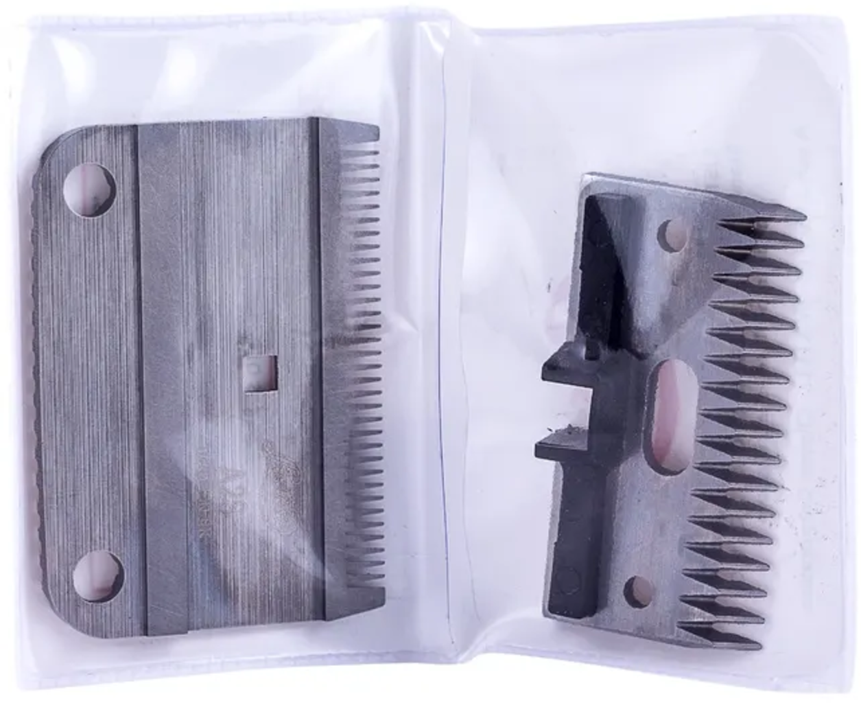 The A2S/AC Surgical blade set is a professional-grade replacement blade set made of stainless steel with a 75 mm cutting comb width, 35 teeth and 1 mm cutting length. This type of blade is ideal for pre-surgery prep as it cuts the fur close to the skin.