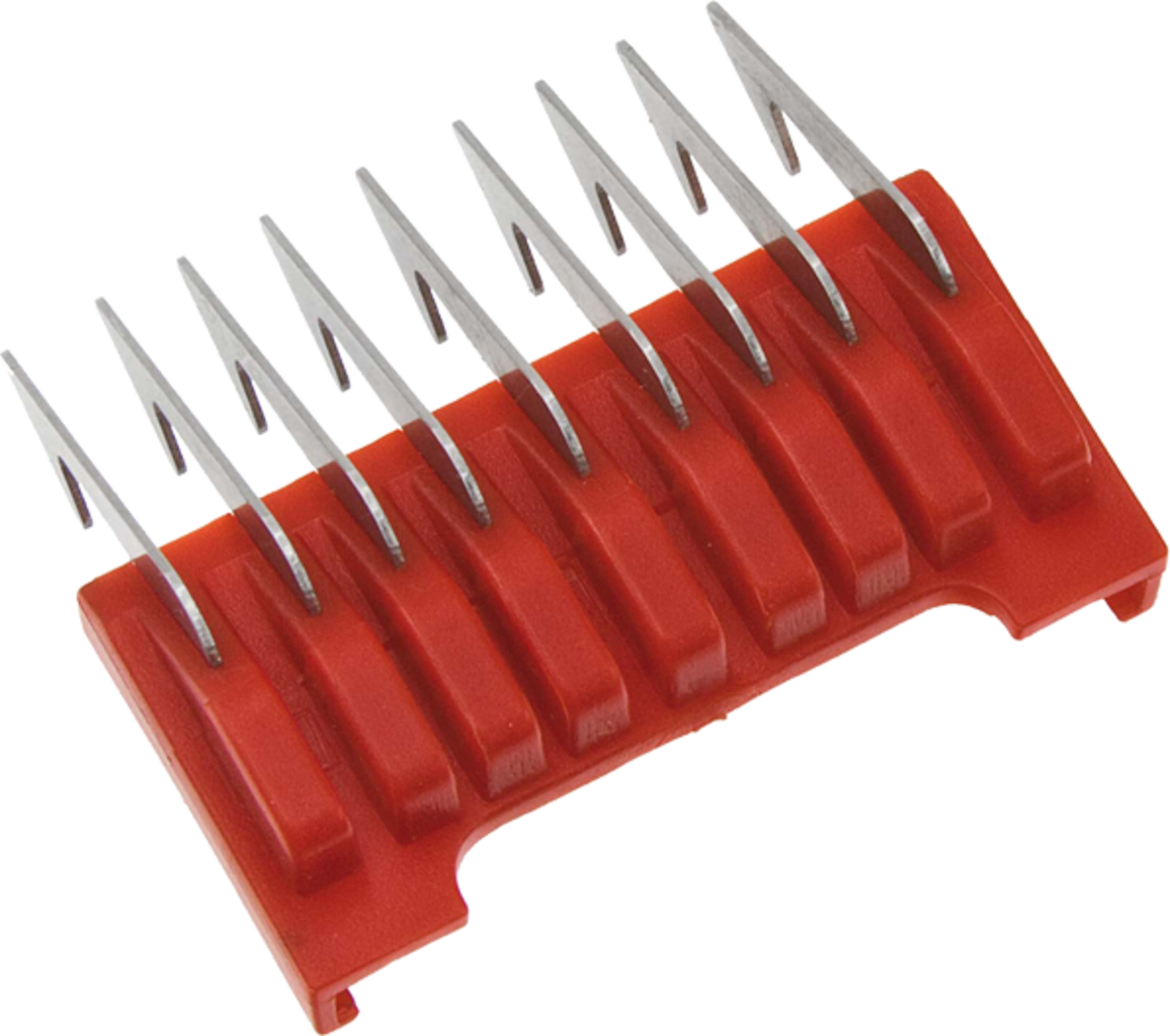 The slide-on combs have slender metal teeth that ensure excellent gliding properties. The material also ensures better dimensional stability and a more even shearing result compared to conventional plastic push-on combs. The colour coding makes it easier to identify the individual sizes!