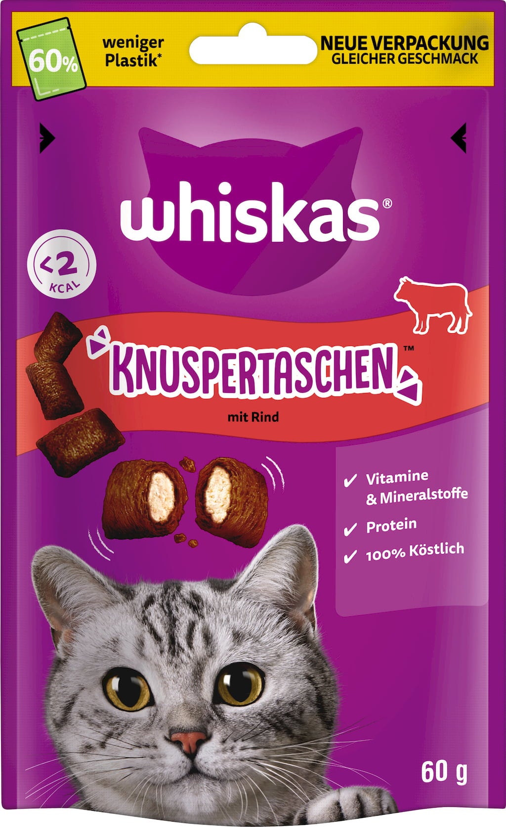 Whiskas Temptations are an irresistibly tasty treat for cats between meals! The dual-textured treats have a crispy shell with a soft and juicy filling.